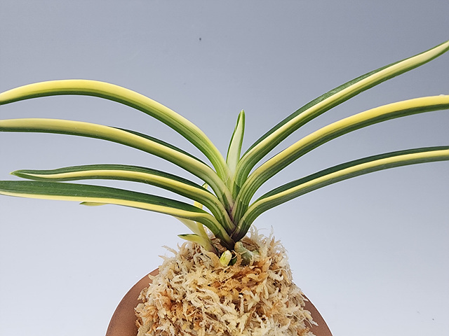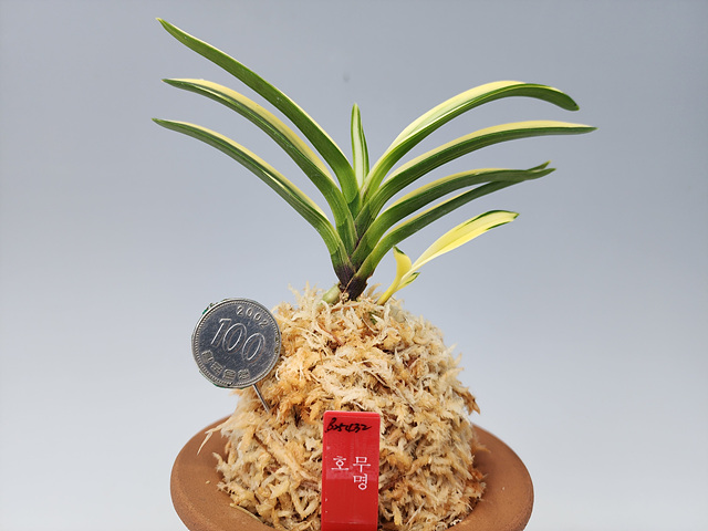 올만에 좋은 호를 소개합니다.이 풍란에 대한 정확한 정보는 없지만 성장하면서 변화되어 지금에 모습을 볼수있습니다. 화려하지만 성장성 좋으며 무늬 방향에서 나오는 뿌리는 아주 좋은 루비근도 나오기 시작합니다.