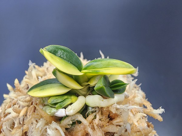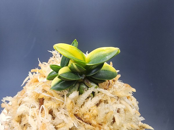 '부악(富嶽)' 무늬의 총 산반(總散斑) 황호(黃縞)로, 잎 전체에 산반호를 흘리는 무척 아름다운 일품이다(이름은 '호리우치(堀內一博)'씨 명명).